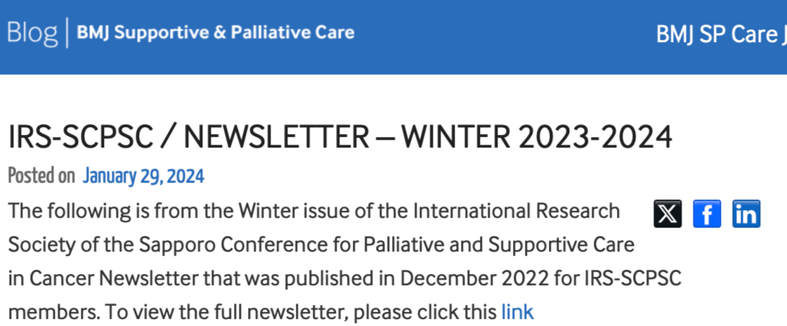 January 29, 2024. The Winter issue of the SCPSC Newsletter was published on the BMJSPCare Blog.